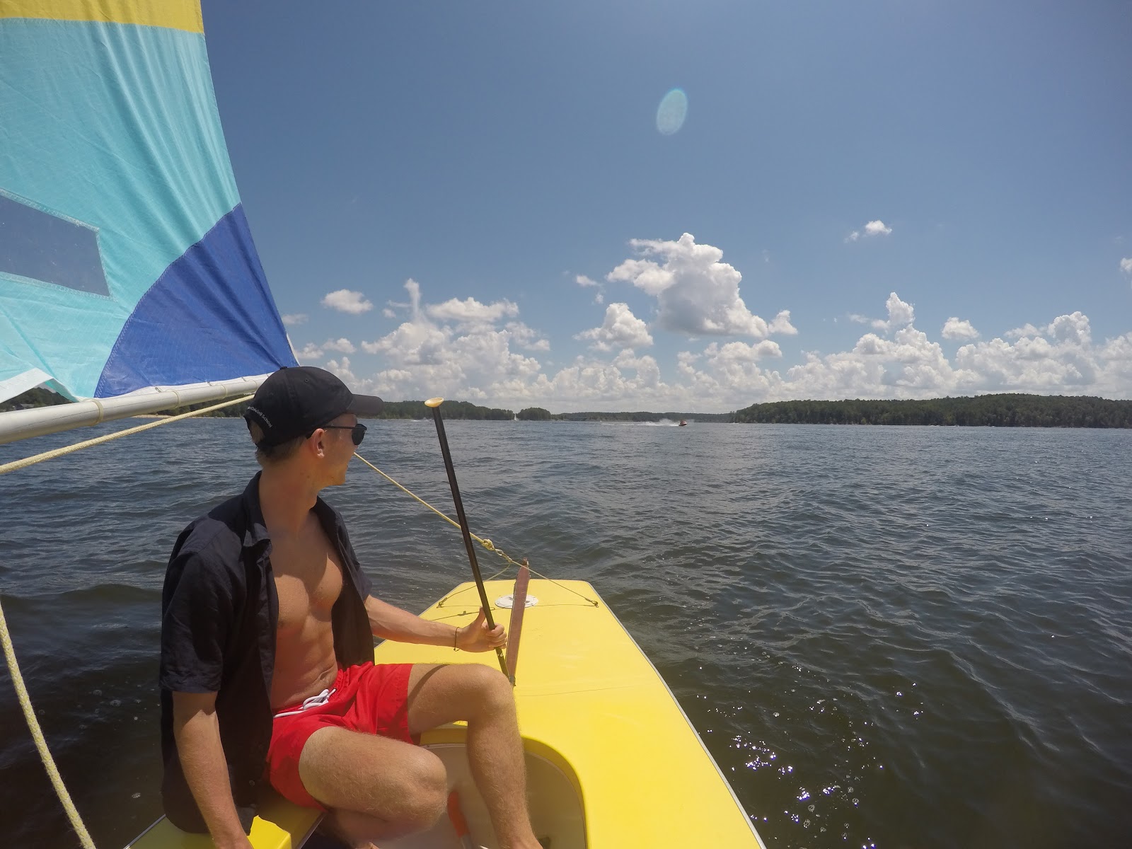 I love sailing. I have a small Sunfish that I'll take out on the lakes around Raleigh. I also have a stand-up paddleboard that I'll take out when the winds aren't strong enough for sailing.