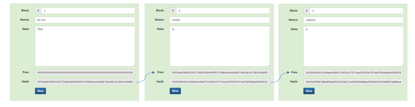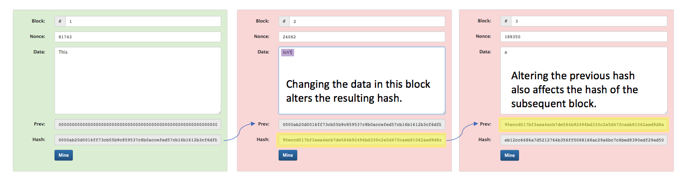 I encourage you to play around with the demo to see how changing information in one block affects the subsequent blocks.