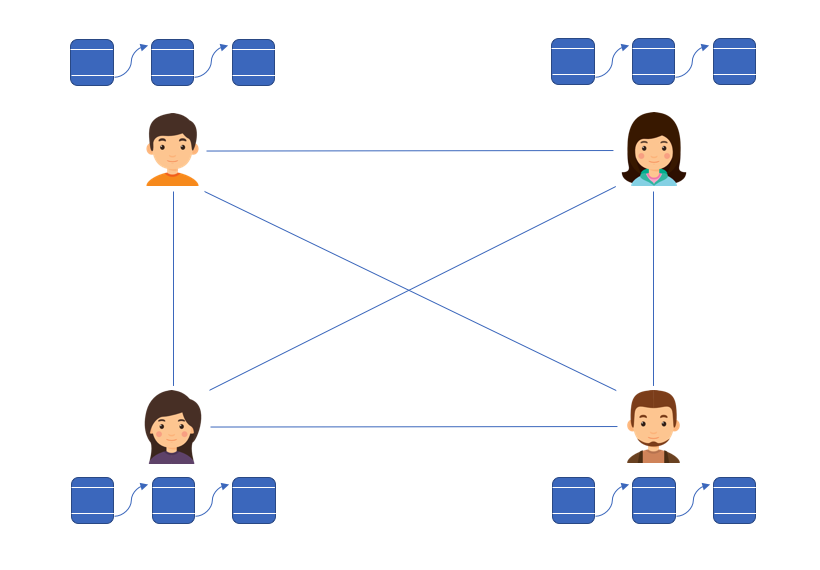 So far we've discussed the blockchain from the perspective of a single player, but the true blockchain protocol requires a network of participants, each maintaining their own blockchain. Thus, our ledger of data must be distributed across a network.