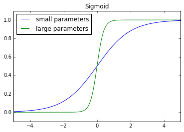 Suppose the case where we have an output neuron which performs binary classification of whether or not an image contains a cat. The output neuron should produce a value close to 1 for cases where image contains a cat and produce values close to 0 for cases where the image does not contain a cat. We measure the performance of this neural network by comparing the output of the neuron to the true label. The true label will always be either 0 or 1, thus our model is incentivized to produce outputs as close to 0 or as close to 1 as possible. One way to accomplish this is by simply increasing the magnitude of the weights. As you can see below, large parameter values have the effect of pushing input closer to 0 and 1; in effect, this arbitrarily increases the confidence in our predictions.
