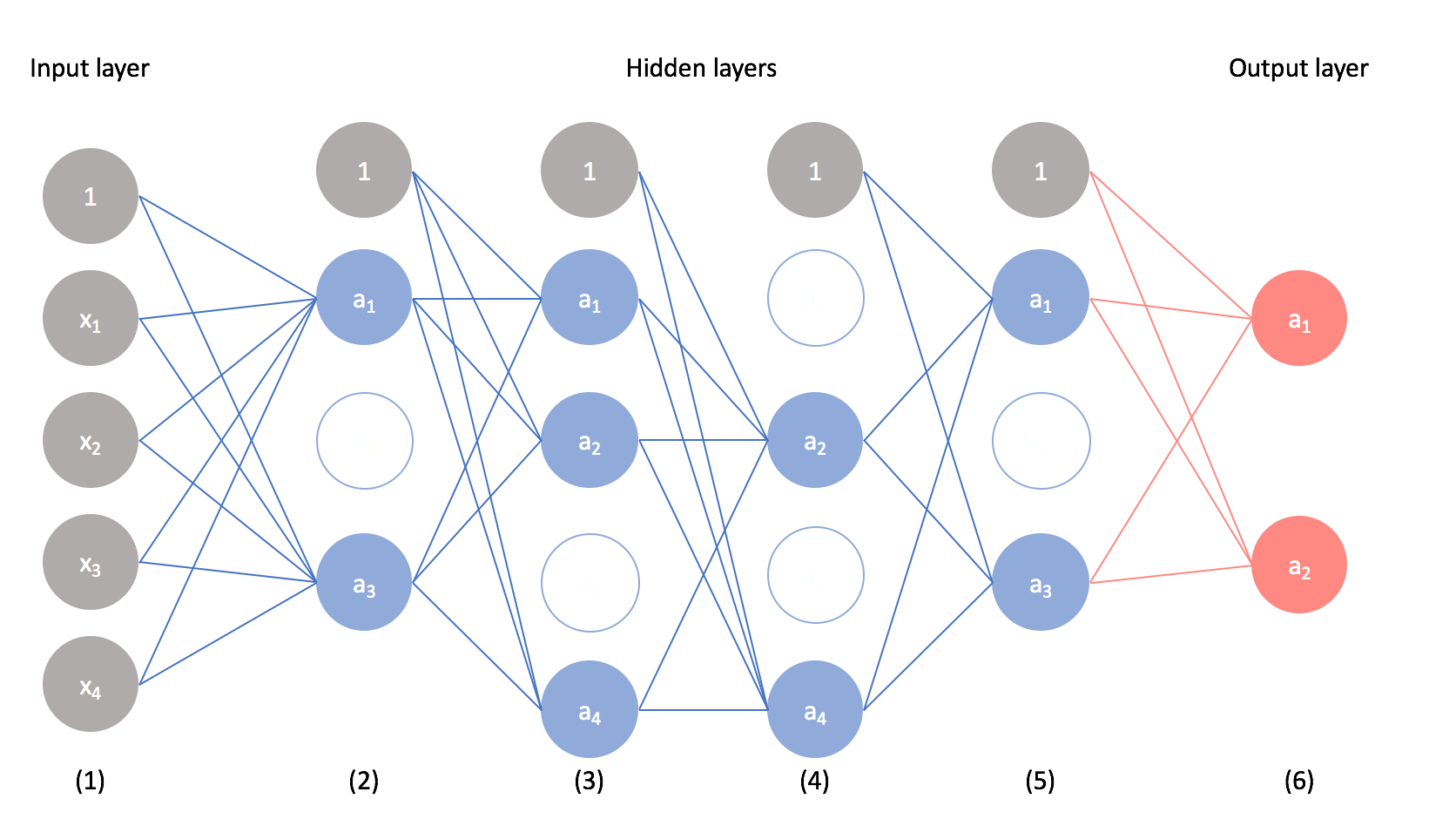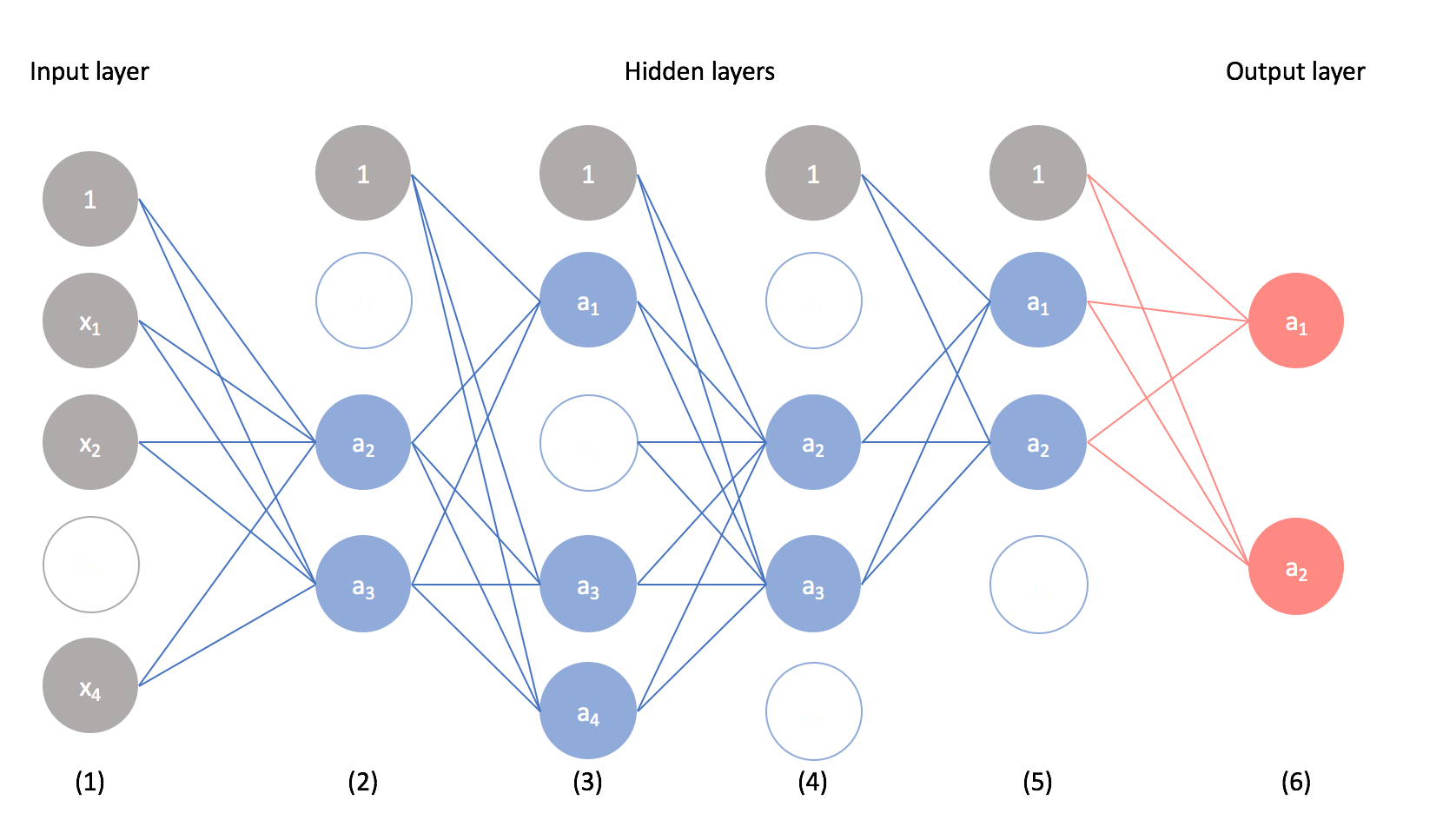 Using dropout, we can build multiple representations of the relationship present in the data by randomly dropping neurons from the network during training. We use a Bernoulli distribution to decide which neurons should be dropped, defining the probability that any given neuron will be dropped as a parameter.