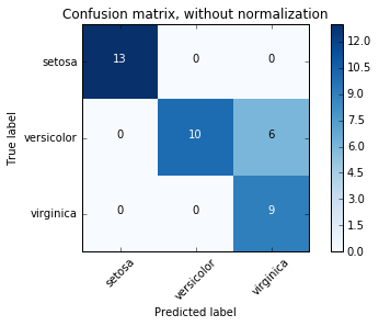 You can also extend this confusion matrix to plot multi-class classification predictions. The following is an example confusion matrix for classifying observations from the Iris flower dataset.