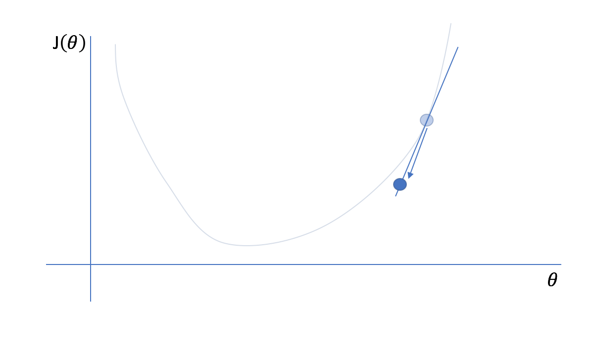 $$\Delta {\theta_i} = - \alpha \frac{{\partial J\left( \theta \right)}}{{\partial {\theta_i}}}$$