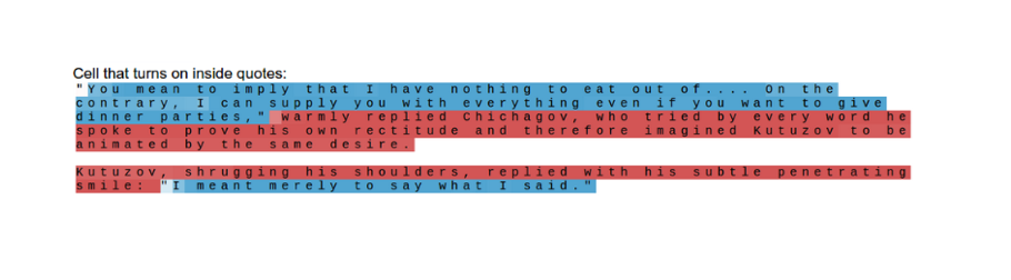 Ideally, our model output would look something like this when reading the first sentence (roughly following the inside–outside–beginning tagging format).