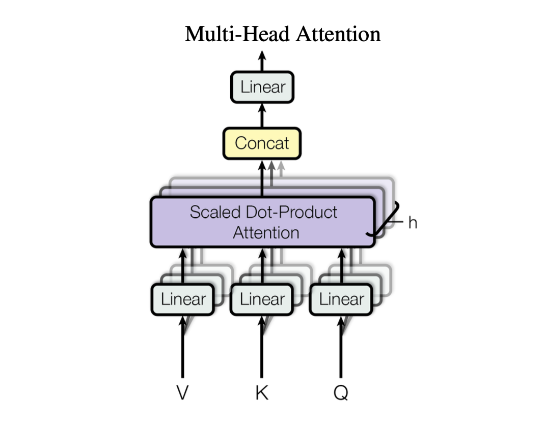 - multi-head (self) attention: queries are computed for each step in the input sequence and are compared against keys computed across all steps in the input sequence